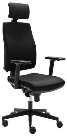 Exkluzív irodai szék kiváló minőségű öntött poliuretán habból készült ülőlappal és határozott ívű háttámlával. Rendkívül tartós, akár 150 000 ciklust kibír. Szinkronmechanikával. Magasságban állítható karfákkal. A stabilitást robusztus műanyag lábkereszt biztosítja.