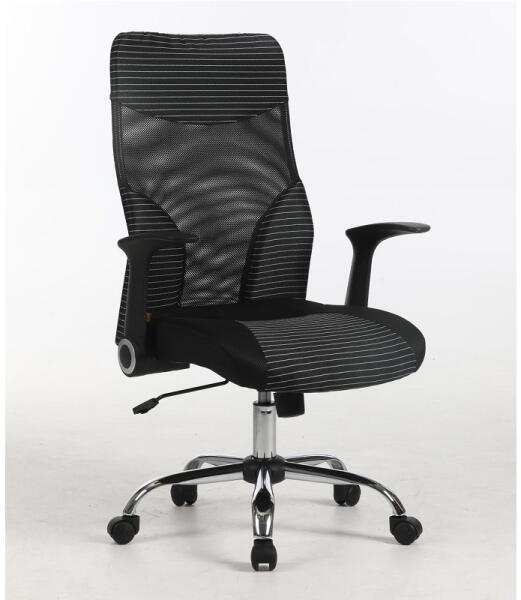 Felhajtható karfás irodai forgószék, így az asztal alá is könnyen betolható. Jól szellőző hálós háttámlája és állítható rugózási keménységű hintamechanikája kényelmes ülést biztosít, masszív acél lábkeresztje pedig a stabilitásért felel.