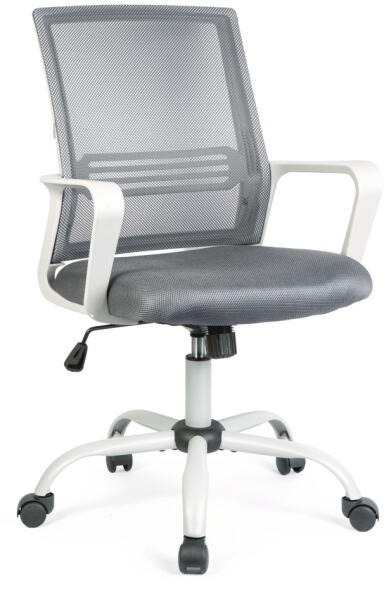 Modern megjelenésű, kényelmes irodai forgószék szürke színben, amely ideális választás otthoni vagy munkahelyi környezetbe. Ergonomikus kialakításának és állítható magasságának köszönhetően hosszabb ülések esetén is komfortos használatot biztosít. A háttámla és a karfák erős, de rugalmas anyagból készültek, míg az ülőfelület strapabíró rétegelt lemezre épül. A szék pillangómechanikával, gázlifttel és fém lábcsillaggal van ellátva, amely stabilitást és tartósságot garantál.
