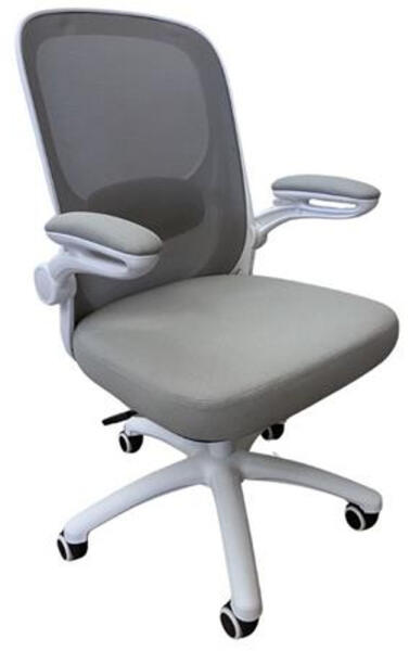 Irodai forgószék, szürke hálós háttámla, szövet ülőlap, fehér műanyag váz és lábkereszt, Kea (KEA HÁLÓ SZÜRKE, VÁZ FEH)