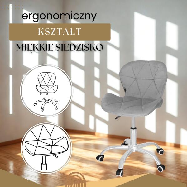 ALAPVETŐ ADATOKMárka: Springos®Szín: szürke, króm, fekete elemekAnyag: Fém, műanyag, bársony, habszivacs töltetMaximális terhelhetőség: 120 kgMéretek:Teljes magasság: max 83 cm, min 71 cmÜlés teljes szélessége: 47 cmTeljes mélység: 50 cmÜlés magassága a talajtól: max 52 cm, min 40 cmÜlés mélysége: 37 cmÜlés max szélessége: 47 cmSzélesség az ülés és a háttámla csatlakozásánál: 32 cmHáttámla max szélessége: 42 cmHáttámla magassága az üléstől: 33 cmHáttámla és ülés vastagsága: kb. 3 - 6 cmAlap teljes szélessége: 51 cmAlap magassága kerekekkel: 15 cmKerekek átmérője: 4,5 cmAlap karjának szélessége: 4,5 cmTeleszkópos láb átmérője: 5 / 3 cmTovábbi információk:Szék bársonyszövet kárpitozással, puha töltettel, kárpit színe szürkeMagasságállításÖtkarú alap, kerekekkel ellátva, 360 fokban forgó kerékkelBal oldalon fekete címke fehér Springos logóval (4 x 1,5 cm)