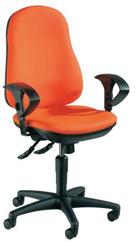 Kárpitozott irodai szék formázott háttámlával és integrált ágyékcsigolya támasszal, magasság-állítási lehetőség reteszelő mechanikával. Előnye a kényelmes ergonomikusan formázott ülőlap és a szinkron háttámla mechanika, mely lehetővé tesz az ülőlap és a háttámla kölcsönös helyzetben történő folyamatos, fokozatmentes állítását, beleértve az ülésmagasságot is. A háttámla ellennyomása állítható a széken ülő személy testsúlya alapján. A forgószék puha padlófelületekre való, terheléstől függően fékezhető biztonsági dupla görgőkkel rendelkezik. Három színkivitelben áll rendelkezésre. A forgószék teherbírása 120 kg. az ülőlap színe: antracit, kék, narancssárga a háttámla színe: antracit, kék, narancssárga a váz színe: fekete a kartámla anyaga: műanyag az ülőlap anyaga: poliolefin a háttámla anyaga: poliolefin keresztszerkezet anyaga: műanyag mechanika: szinkron teherbírás: 120 kg külső méretek ma x szé x mé: 100 - 113 x 58,5 x 45 cm az ülőlap méretei szé x mé: 58,5 x 45 cm az ülőlap magassága