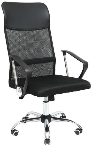 Mesh irodai forgószék, US 129, fekete - Mesh háttámlás irodai forgószék karfával, modern megjelenéssel. Görgős, fém csillaglábas kialakítása segíti a helyváltoztatást, beépített hintamechanikája megfelelő komfortot biztosít. Ülésmagassága gázlifttel állítható. Terhelhetősége 100 kg, háttámlája 67 cm magas. Az ülőfelület mérete 50x52 cm. Mérete: 106-116x63x61 cm.